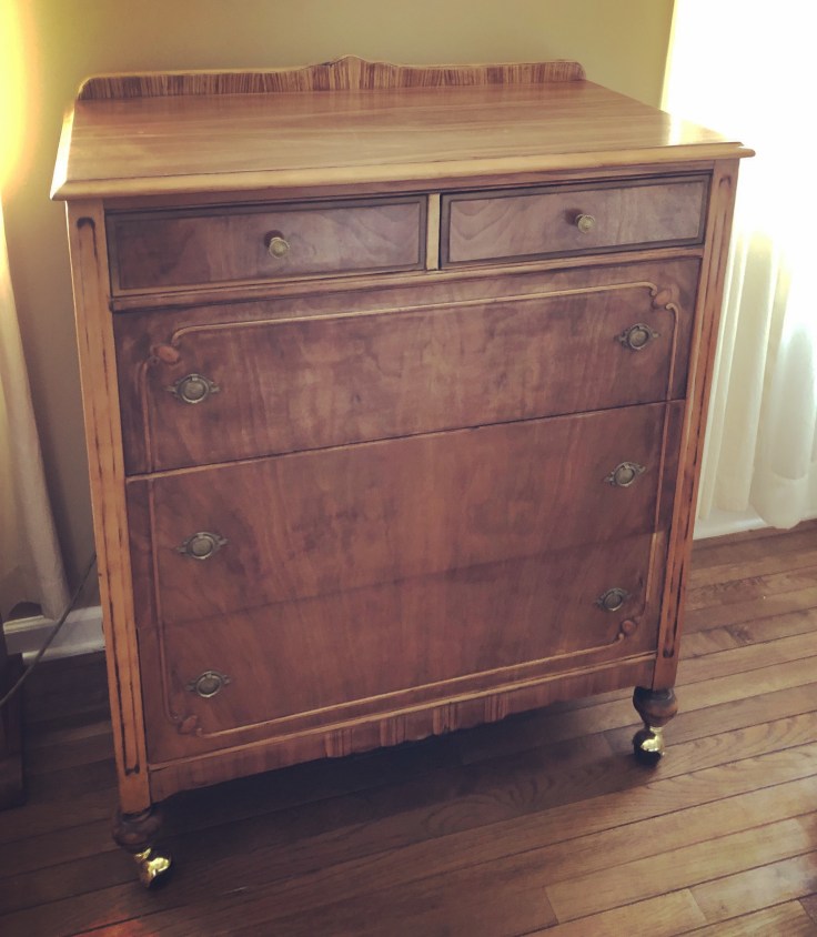 After struggling to strip the paint off and restore the dresser to its former beauty, I now think that anyone who paints (quality) wood furniture is a making a huge mistake. Enough with the chalk paint! Shabby chic is boring! Let the wood grain shine!