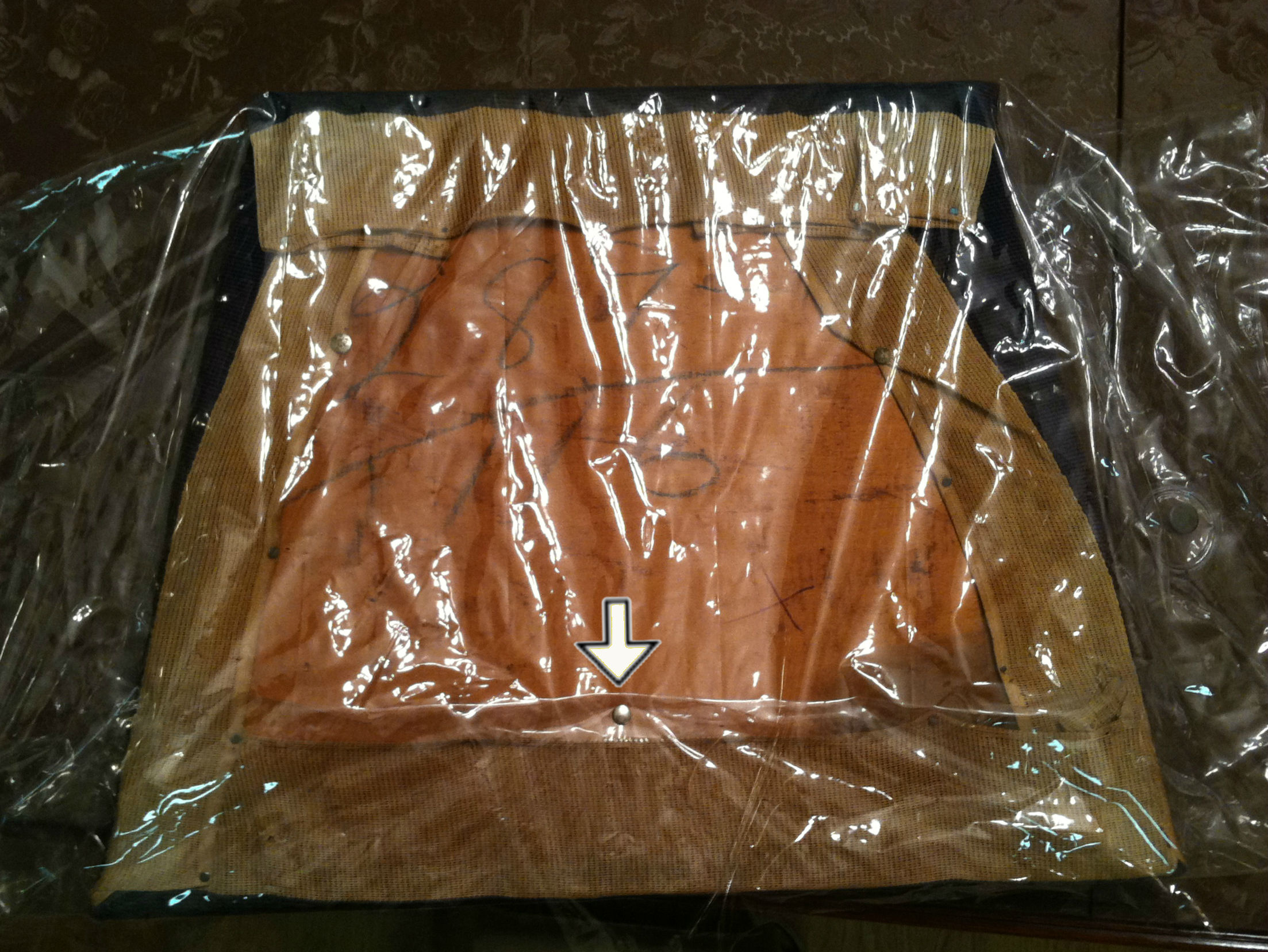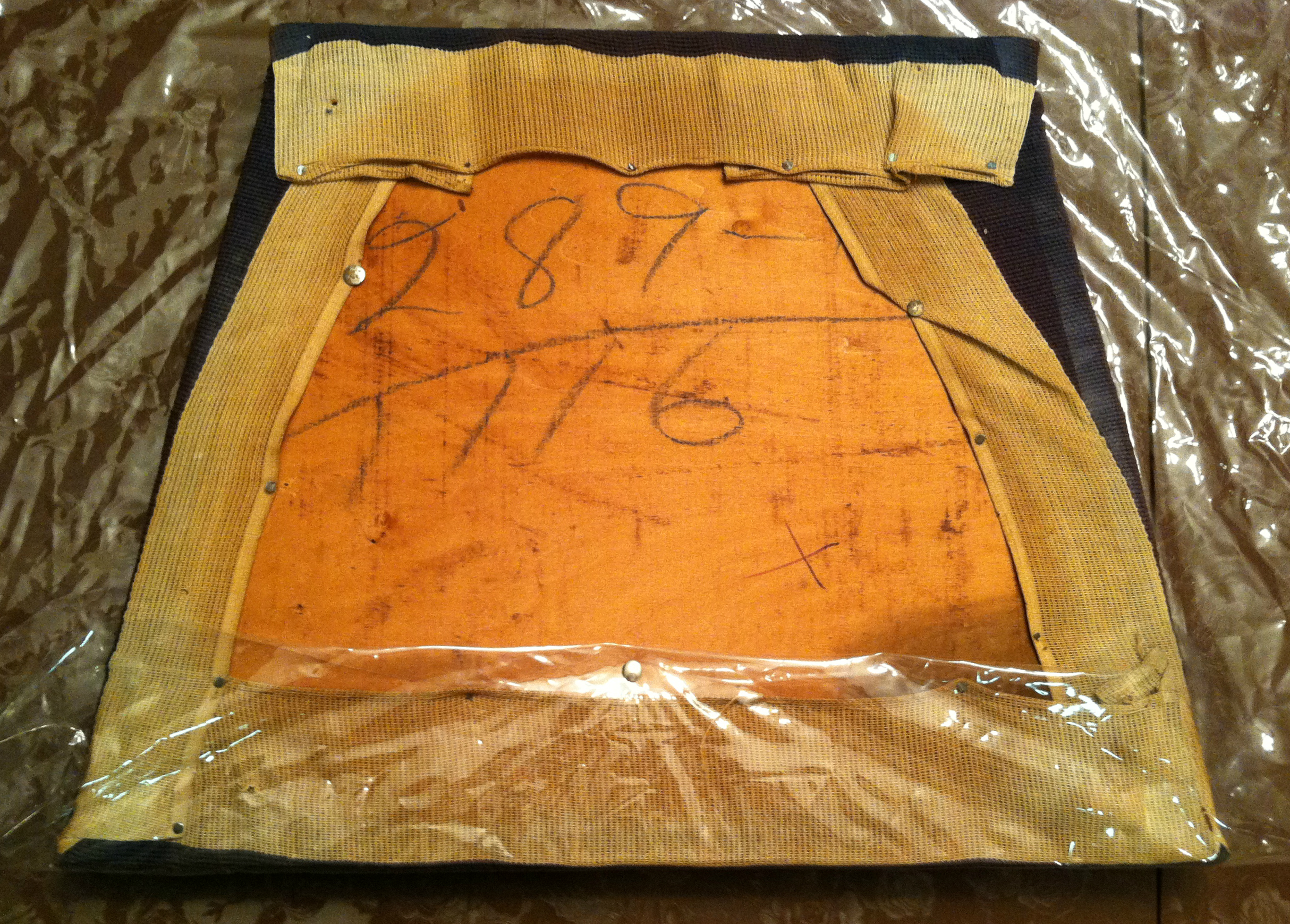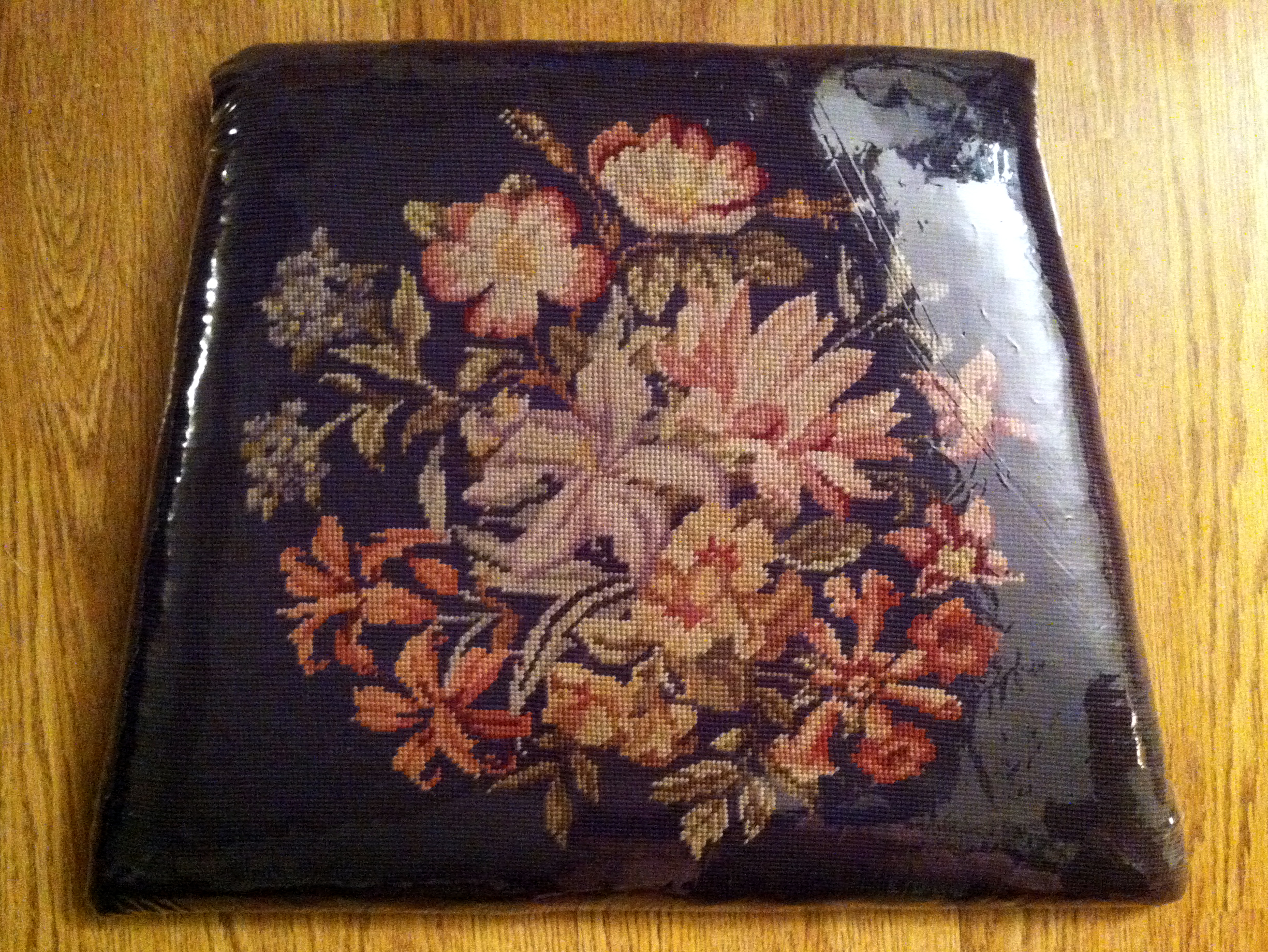 So I decided to find seat covers that would protect the needlepoint without obscuring it, by applying the plastic covers that are ubiquitous in the homes of ladies from previous generations. The trouble was that the only option seemed to be going to a professional upholsterer and the work could cost up to $50 per seat ($50 x 6 chairs = $300 total). This was not an option for me so I decided to make the chair covers myself out of easy to obtain materials, and accomplished the task for about $26. Here’s how I did it.