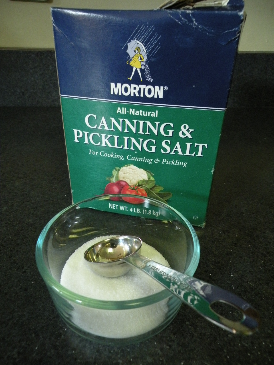 1/2 tablespoon (or so) of pickling salt (you’re going to have to buy a whole box)