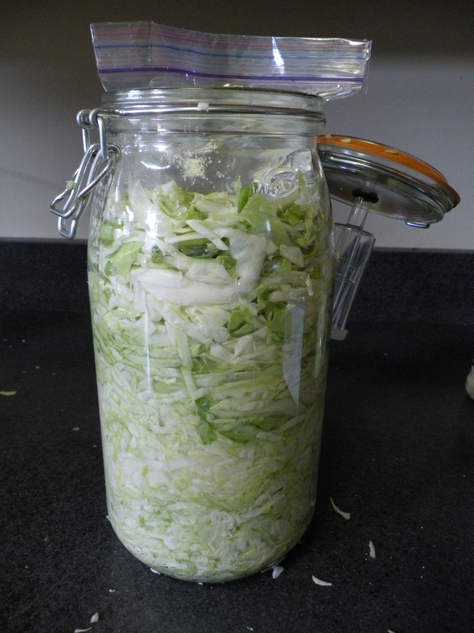 Keep shoving cabbage in the jar, and adding salt. If you’re not making a mess, you’re doing it wrong.