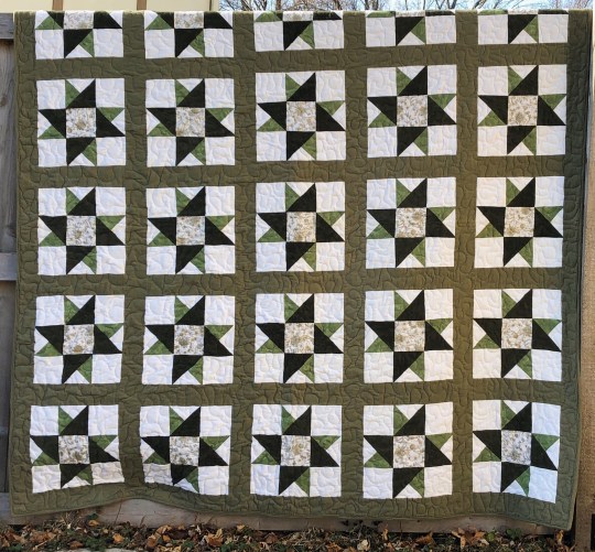 I found a lovely green floral fat quarter fabric at JoAnn’s and thought it would be great in the star quilt I was designing in my head. When combined with two tones of super soft green flannel, the resulting quilt is a new favorite.