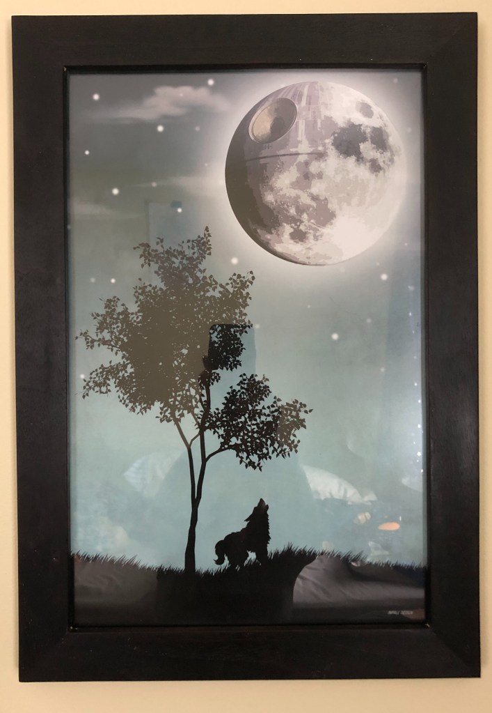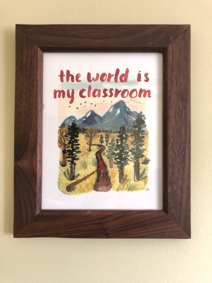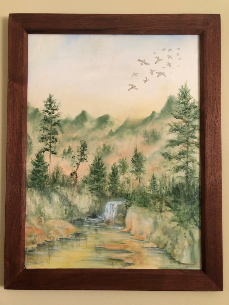Lately Mark has taken up making picture frames. He’s framed several of the pictures for the boys’ rooms from walnut and cherry. For the glass, he used the glass from the old storm windows. He’s also made a framed mirror for our foyer.