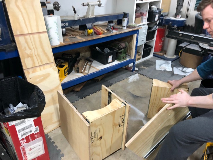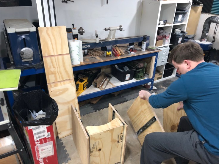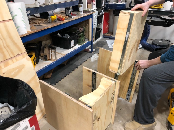 Look at all this glorious storage! I know its just plywood, but I think is beautiful. The boys were a little sad to lose the play space, but I’m sure they’ll find something new to occupy themselves in about 30 seconds.
