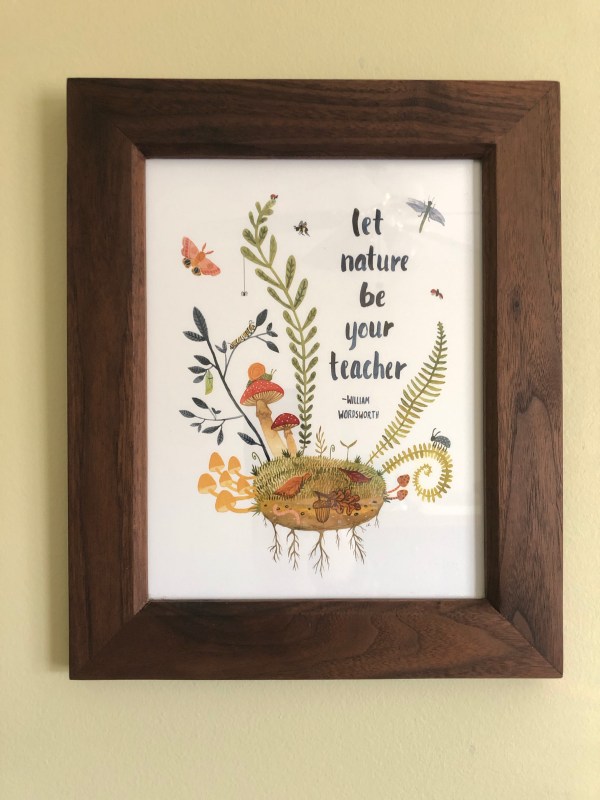 Lately Mark has taken up making picture frames. He's framed several of the pictures for the boys' rooms from walnut and cherry. For the glass, he used the glass from the old storm windows. He's also made a framed mirror for our foyer. Oil landscape painting by Barbara Northern Watercolor print purchased from Little Truths... Continue Reading →