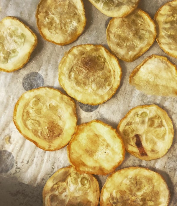 We broke out the vintage food dehydrator to make zucchini chips. The results were satisfyingly crunchy, and now we’ll play with the seasonings.