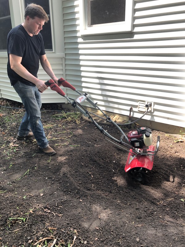 We replaced some very pathetic looking day lillies and assorted weeds with new plants. I don’t even have a before picture, but be assured it looked awful. Mark enjoyed renting the tiller and driving it through the soil.
