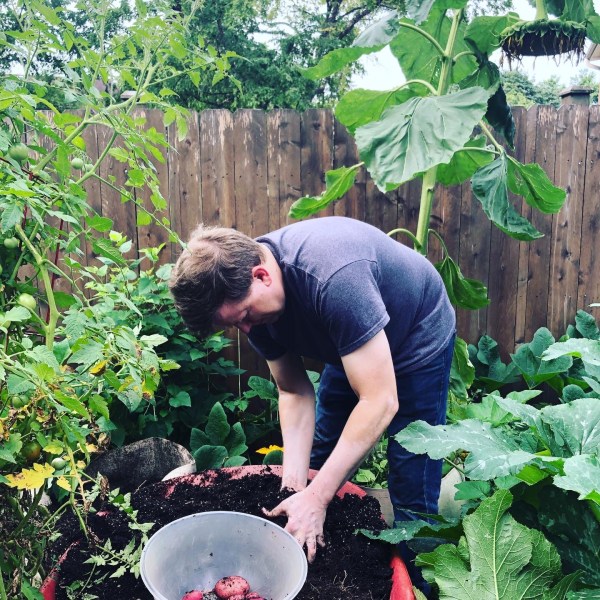 Today’s garden haul. Potatoes, cucumber, green beans, pumpkins and onions. There’s at least 5 pounds of tomatoes ready to pick but we’re running out of places to put them, so they can stay on the vine a bit longer.